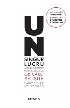 Un singur lucru. Adevarul neasteptat de simplu de la baza oricarei reusite. Cine alearga dupa doi iepuri nu prinde nici unul. Asaltul zilnic de e-mailuri, mesaje si intalniri ne distrage de la ce e important si ne streseaza enorm. Solicitarile de la locul de munca si din familie sunt din ce in ce mai numeroase. Rezultatul: productivitate scazuta, deadline-uri depasite, castiguri mai mici, incetarea ascensiunii profesionale. Dar vrem mai mult. Vrem mai multa productivitate. Vrem castiguri mai mari, pentru un nivel de viata mai ridicat, vrem mai mult timp pentru noi, familia si prietenii nostri.Dar putem sa facem mai putine lucruri si sa realizam mai mult. Teoria unui SINGUR lucru ne obliga sa gandim la scara mare, sa analizam lucrurile atent pentru a crea o lista, sa ne stabilim prioritatile si sa ne concentram asupra primului lucru de pe lista – acel un SINGUR lucru care declanseaza efectul de domino.Prin urmare, sa ne pregatim sa traim o viata noua! A atins o coarda sensibila […] faptul ca, atunci cand te trezesti dimineata, te concentrezi asupra acelui lucru pe care vrei sa-l realizezi in timpul zilei, ceea ce pare simplu. – Maria Sharapova, fost numar unu din tenisul mondial Un singur lucru de Gary Keller si Jay Papasan este o carte usor de citit, dar profunda, care m-a ajutat sa ma concentrez pe mentinerea in atentie a lucrului principal in toate domeniile vietii mele. – Brandon Turner, autor si coprezentator al The BetterLife Podcast Un singur lucru te invata: • sa obtii rezultate mai bune in mai putin timp; • sa reduci stresul; • sa scapi de sentimentul de coplesire; • sa iti recapeti energia; • sa obtii rezultate extraordinare la munca si in viata personala. Traducere din limba engleza de Irina Brates.